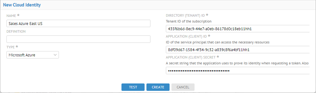 Specific ID's and Secrets required for the particular cloud identity technology.