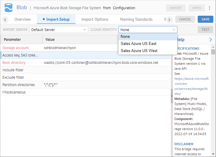 Empty (no longer mandatory) and the authentication is based on the cloud identity on select bridges (such as Microsoft Azure Data Lake Storage, Microsoft Azure Blob Storage, and more to come).