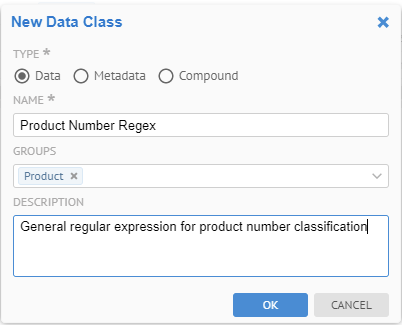 A data class is defined to identify a data pattern. You can define the data pattern manually or ask the application to learn it automatically from the data and approval actions.