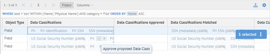 A field or column may be assigned one or more Data-detected and/or Metadata-detected Data Classes. Once that class type is assigned, it is a property of the element and may be searched on, filtered by and further edited (remove the assignment).