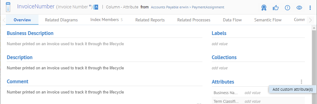 Custom models can be defined for the custom metamodels needed in many data governance related domains such as data management, reference data, data quality, data trust, data security, data sharing and shopping, data issue management, business rules, business process modeling and improvements, vertical market specific business applications and regulation compliance. Administrators can use a new MANAGE > Metamodel capability to define their custom models with the full power of object modeling, all the way the graphical editing of UML class diagrams for each custom models.