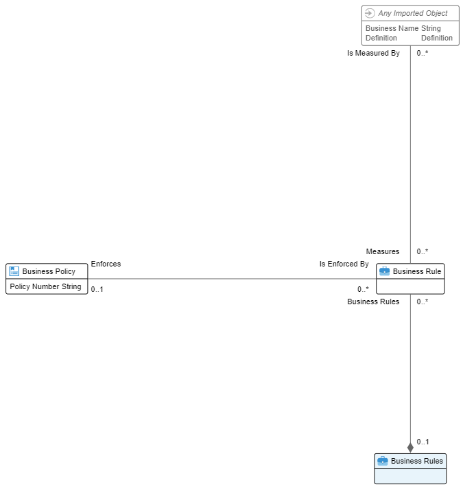 We will create a business policy metamodel where we can define a particular company's policies in a hierarchical fashion and relate them to business rules.