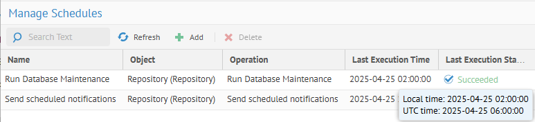 A manual execution of the schedule will also be recorded here.