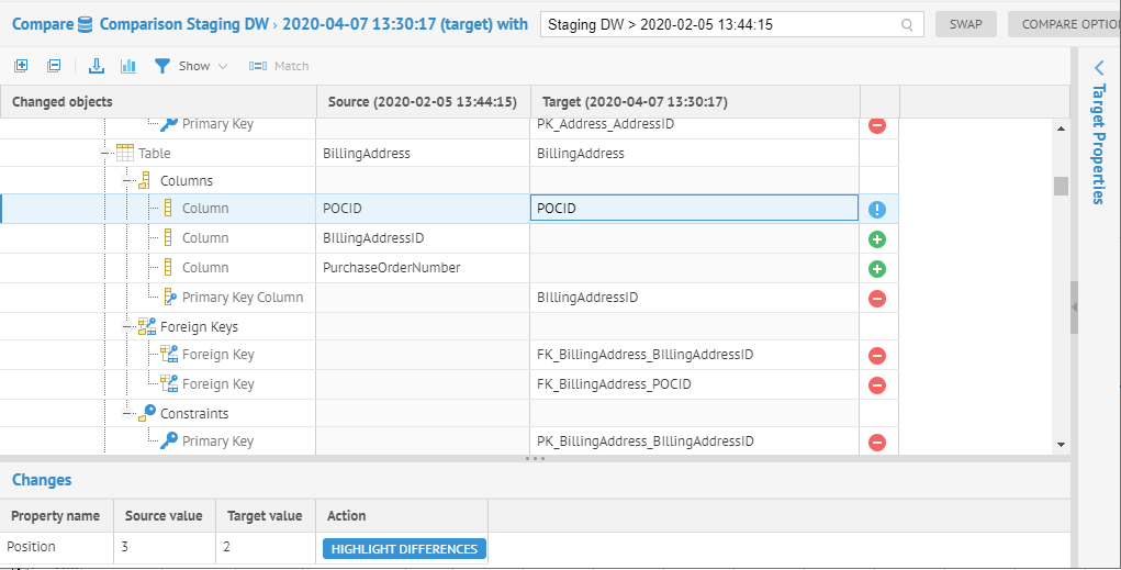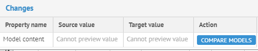 Switch to Merge if comparing two versions of a Physical Data Model.