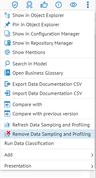 You may initiate or refresh the data profiling and sampling metadata at most levels of an imported model, including:
