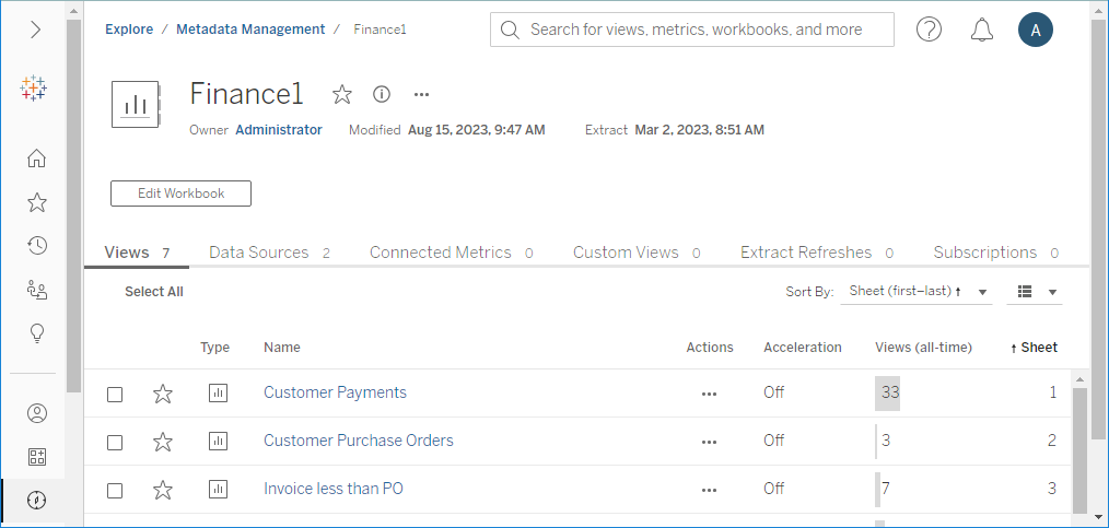 Some objects may be opened on from the original tool. The typical use case is for Business Intelligence (BI) tools on where a report object can be opened in the original tool. This is the case of a Tableau Worksheet where users can Open In Tool at various locations such as: