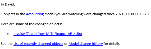 MetaKarta provides watcher capabilities for model level objects allowing a user (or group of users) to effectively subscribe to objects and be notified of changes and there is an adjustable frequency of notification from near real-time to daily.