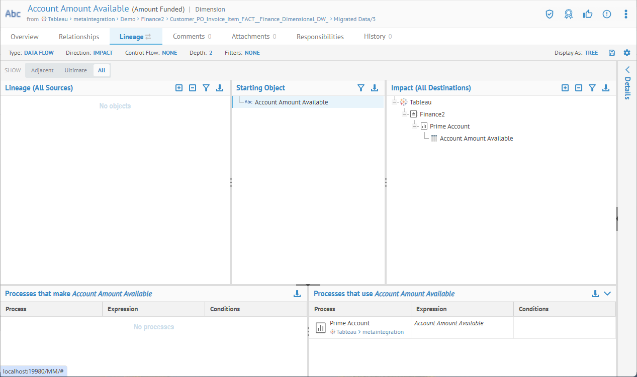 By default, this widget is collapsed (and thus not processed) when first presented. This way the full lineage calculation is required in order to present the overview page.