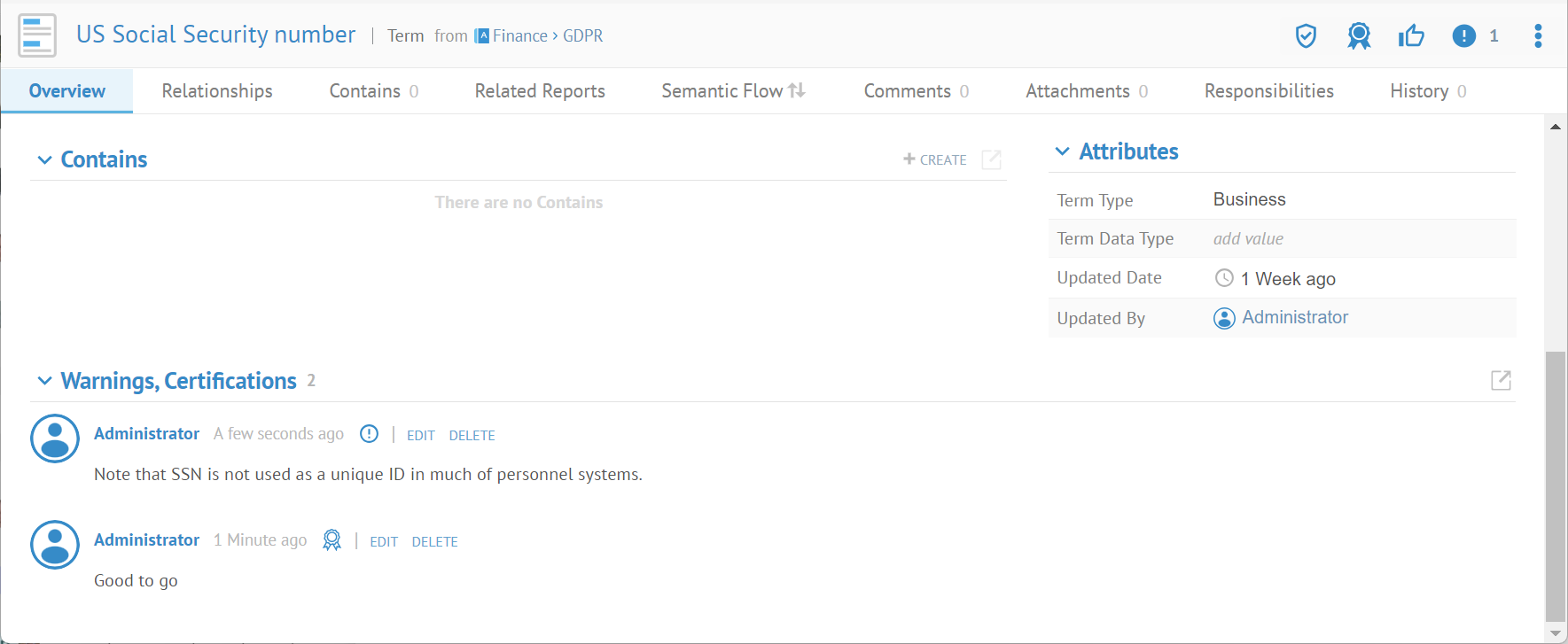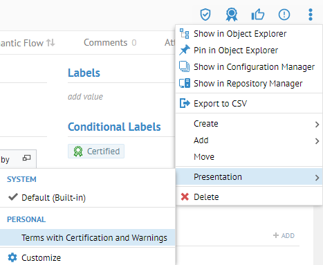 In the top right you may curate this object. You have the option to Certify, Endorse and/or providing a Warning for this object.