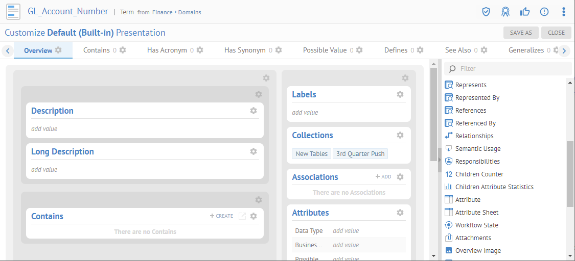 You are presented with the Overview tab. Thus, we will be customizing the Overview tab presentation for any table (object category).