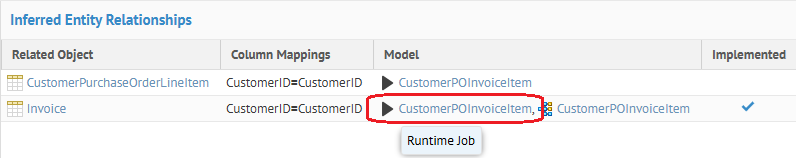 In this case, we see that there is a relationship inferred between the Customer table and the Invoice table. To see how MetaKarta is able to infer this relationship, click on the runtime job named CustomerPOInvoiceItem: