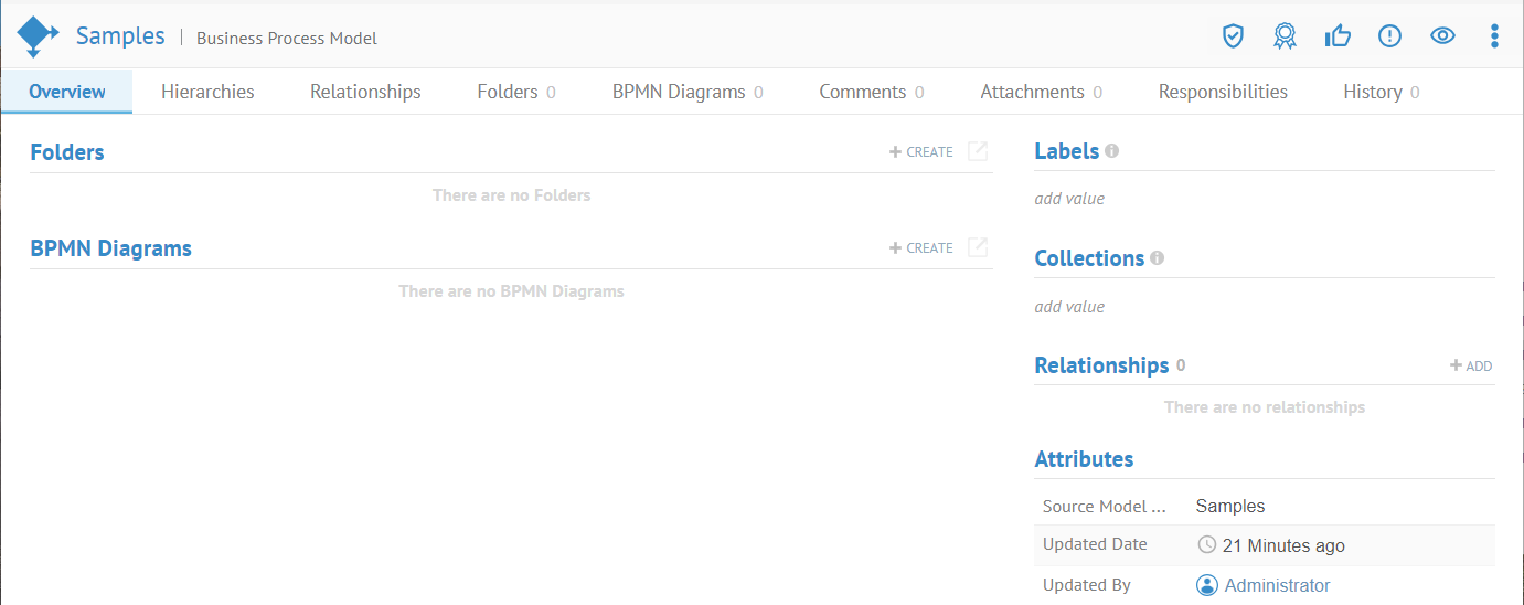 Sign in as Administrator and go to the Overview tab of the object page for the Samples model.