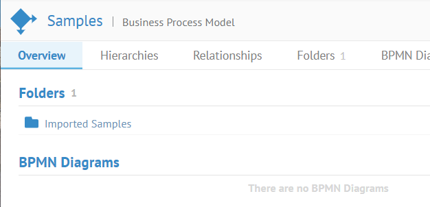 A business process model may contain any number of diagrams. These may be organized hierarchically into a folder structure.
