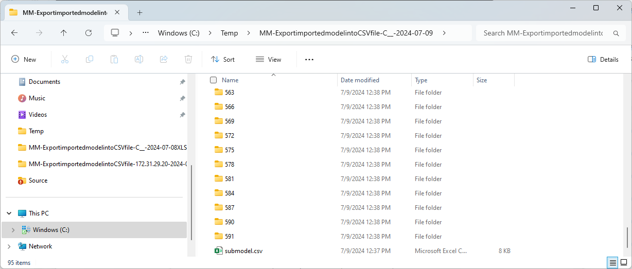 Export File System Imported Model to a CSV Hierarchy