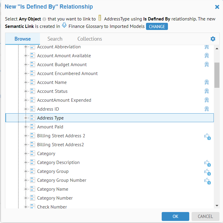 In this scenario you will work with inferred semantic relationships for the Name and Business Definition.