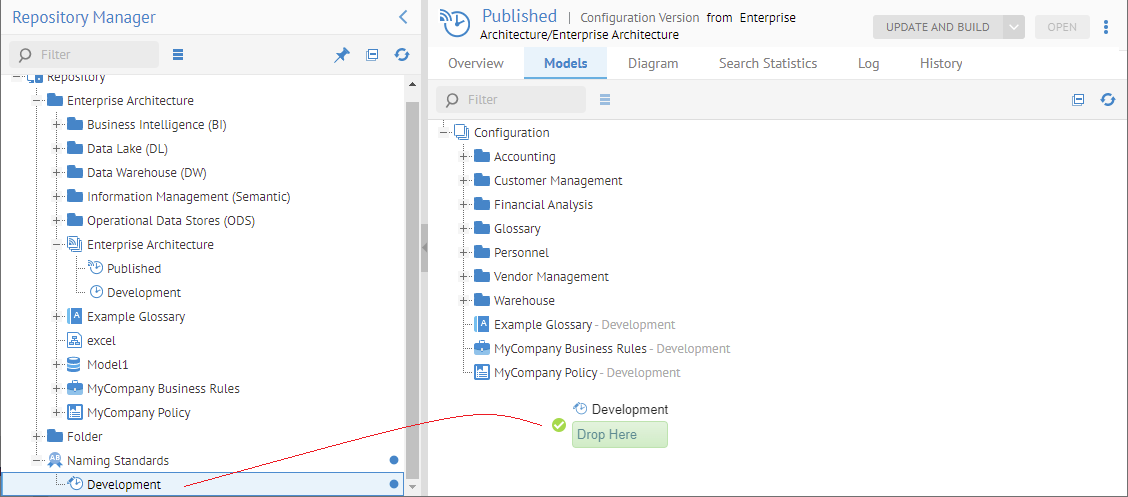 First include the repository-wide Naming Standards object in the current configuration you are working in. You may do so using the MANAGE > Repository facility. Open the Published version of the configuration and Drag the Naming Standards from the Repository Tree to the configuration version.