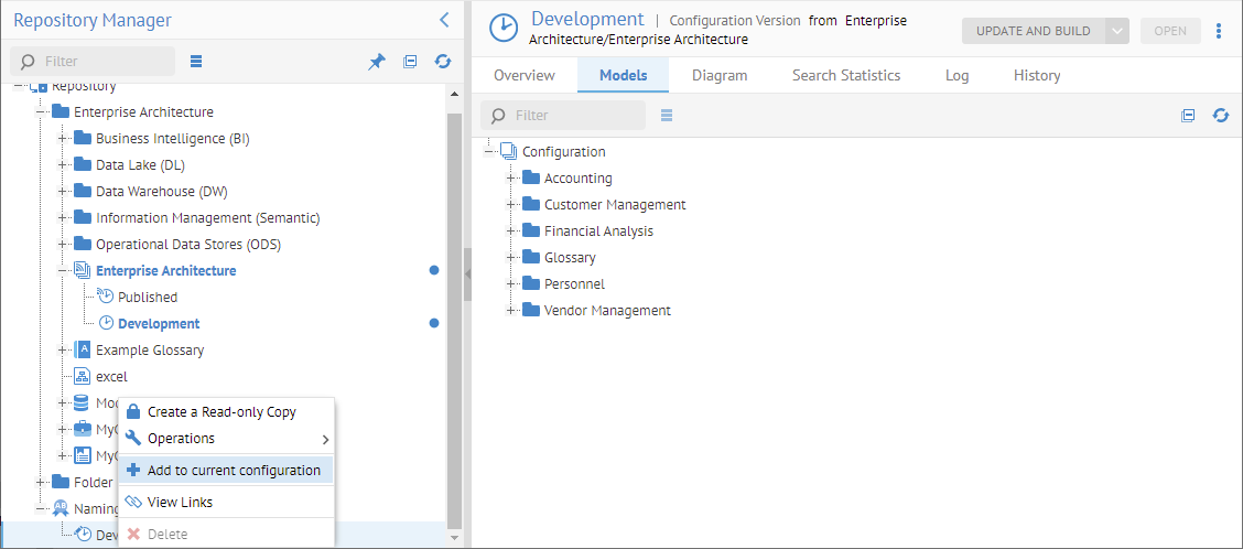 Search for the Accounting file system model and go to its object page. Then click More actions > Show in object explorer in order to see the hierarchical structure.