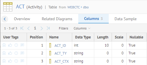 Sign in as Administrator and Navigate to the object page for the ACT table in the WEBCTC model.