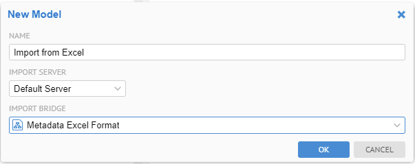 Go to MANAGE > Configuration and Create a new model using the Metadata Format file import bridge: