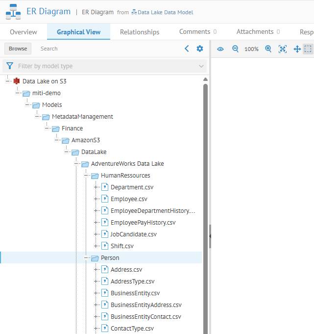 Navigate to the object page for the Staging DW database model and click the ER Diagrams tab.