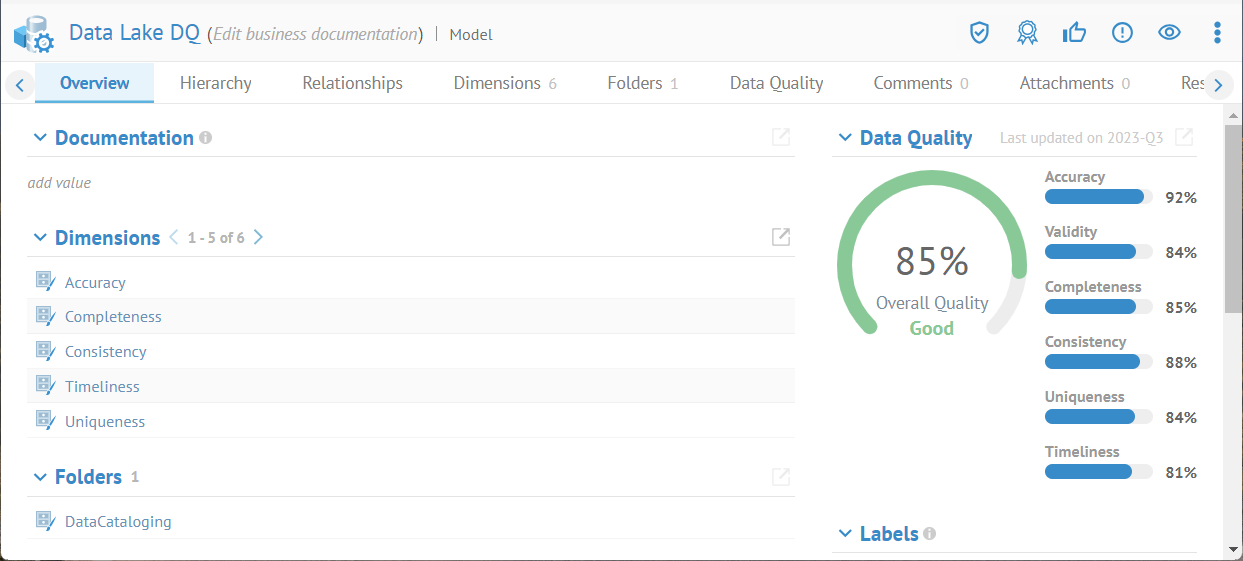The result is a Data Quality type model and contains data quality information related to a specific data store (e.g., database).