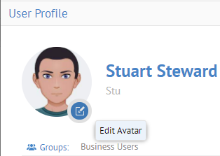 The user account is contained inside parentheses and the Full Name is displayed directly below the avatar image. Groups that a specific user belongs to are displayed below the user account.
