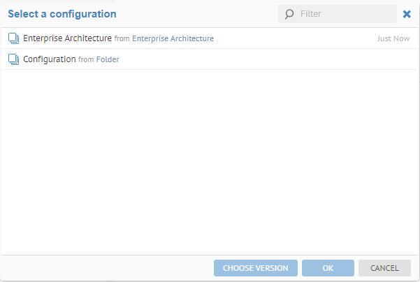 Select the Published configuration in the Demo Enterprise Architecture folder with a single-click this time and click CHOOSE VERSION.