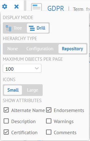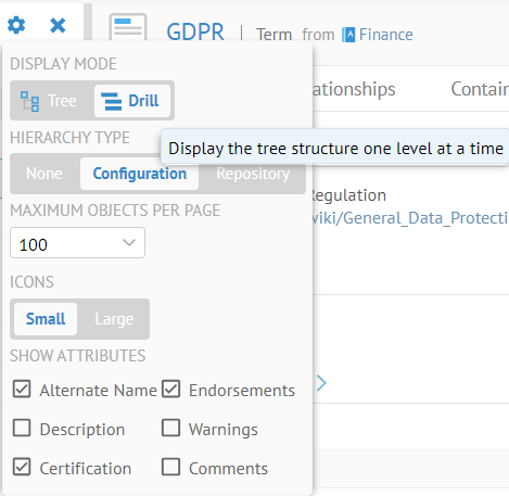 Click the GDPR term in the object page. Here, we navigate to the GDPR term, but the Object Explorer panel does not update to GDPR.
