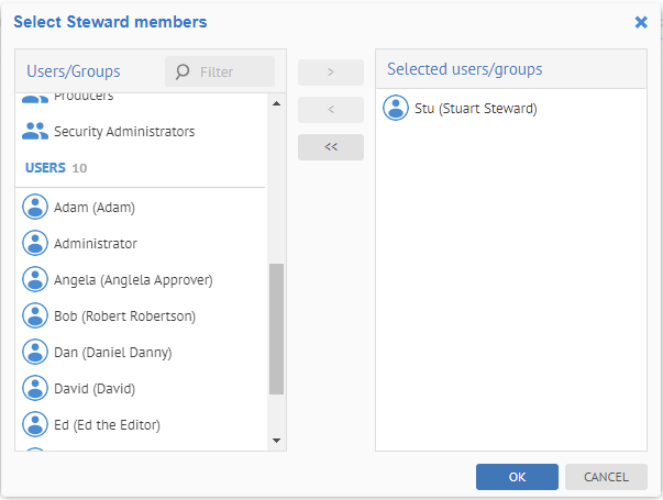 Go to the Responsibilities tab and click ADD ROLE. Assign the Steward role to Stuart Steward for this object.