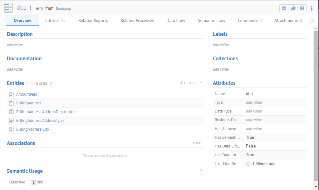 When the process is done, refresh the page, click the dbo term and see all the terms from tables and columns in the model.