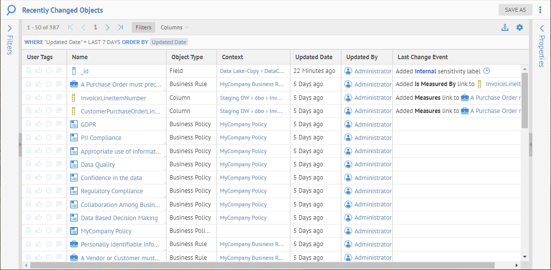Conveniently, you may also discover object changes by using the Last Change Event column in a worksheet (search result). Just as in the Recently Changed Objects worksheet shown above.
