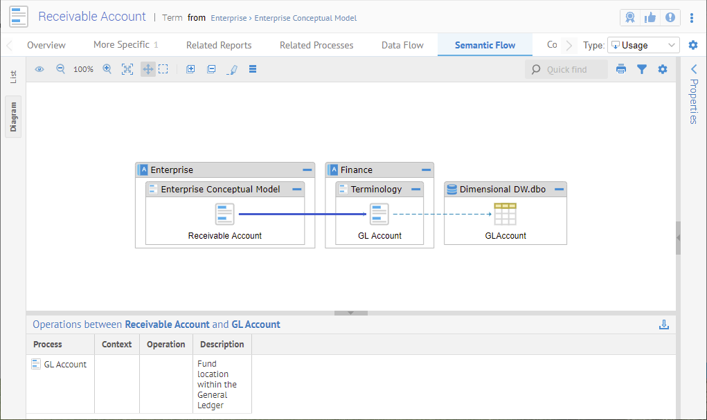 Now, go to the Lineage tab. Be sure to specify Usage for the Type and show the Diagram.