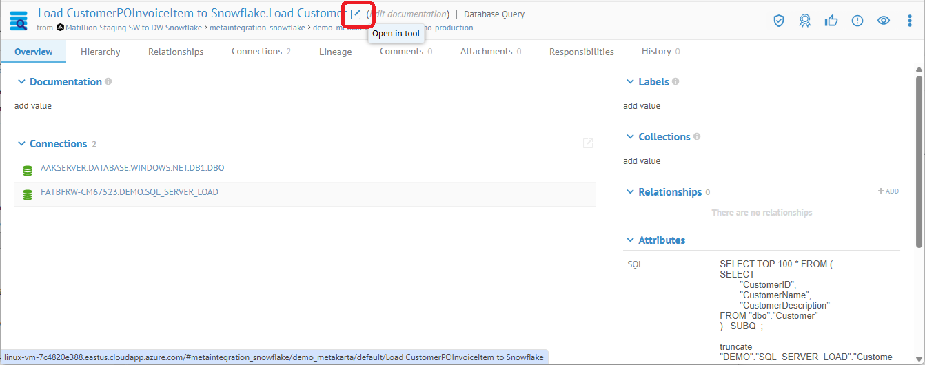 The Open option is presented for each report end point and clicking there presents the report in the third-party tool.