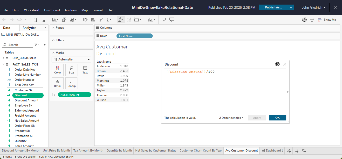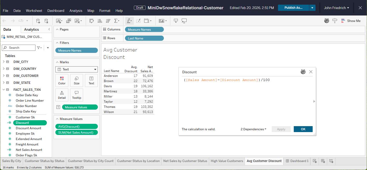 - "Customer" workbook: ([Sales Amount] - [Discount Amount])/100