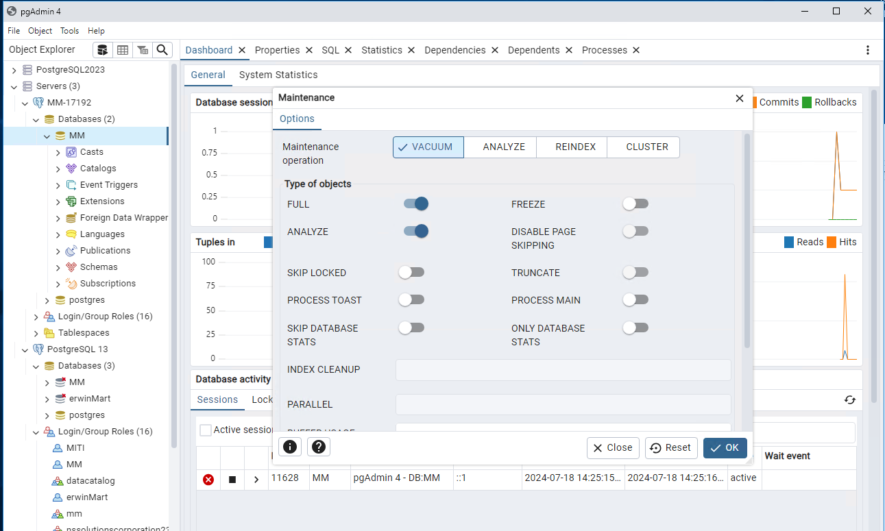 postgresql/binis in the system path. This may take some time if your database is large.reindexdb --username=MM --dbname=MM -v -