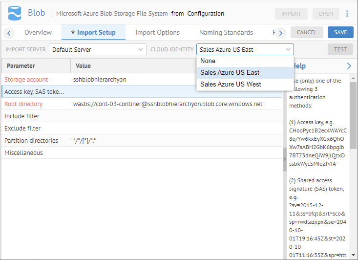 Pick Sales Azure East US as the CLOUD IDENTITY.