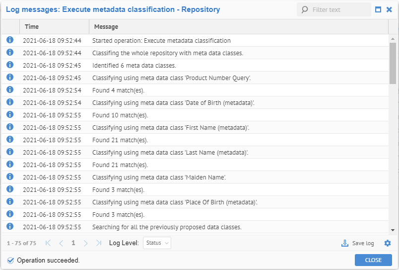 An operation is invoked. Once completed all metadata objects will have data classes proposed for them based upon the matching criteria.