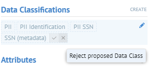 One may simply remove a data class proposal by editing the object's Data Classifications and removing the data class, rather than rejecting it. In this case, the product does not remember this action and future automatic data classification of that object will assign that same data class to that object, as it was not rejected.