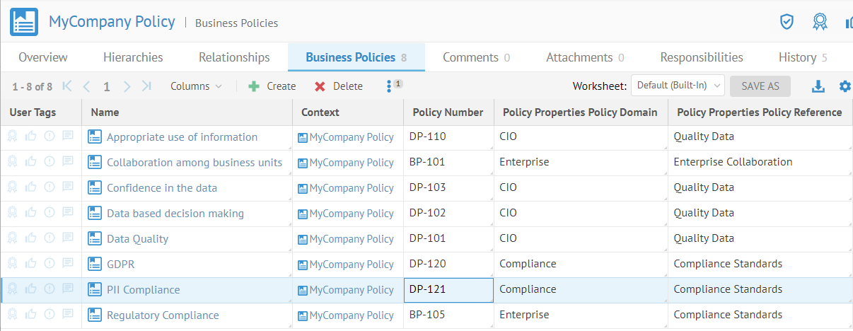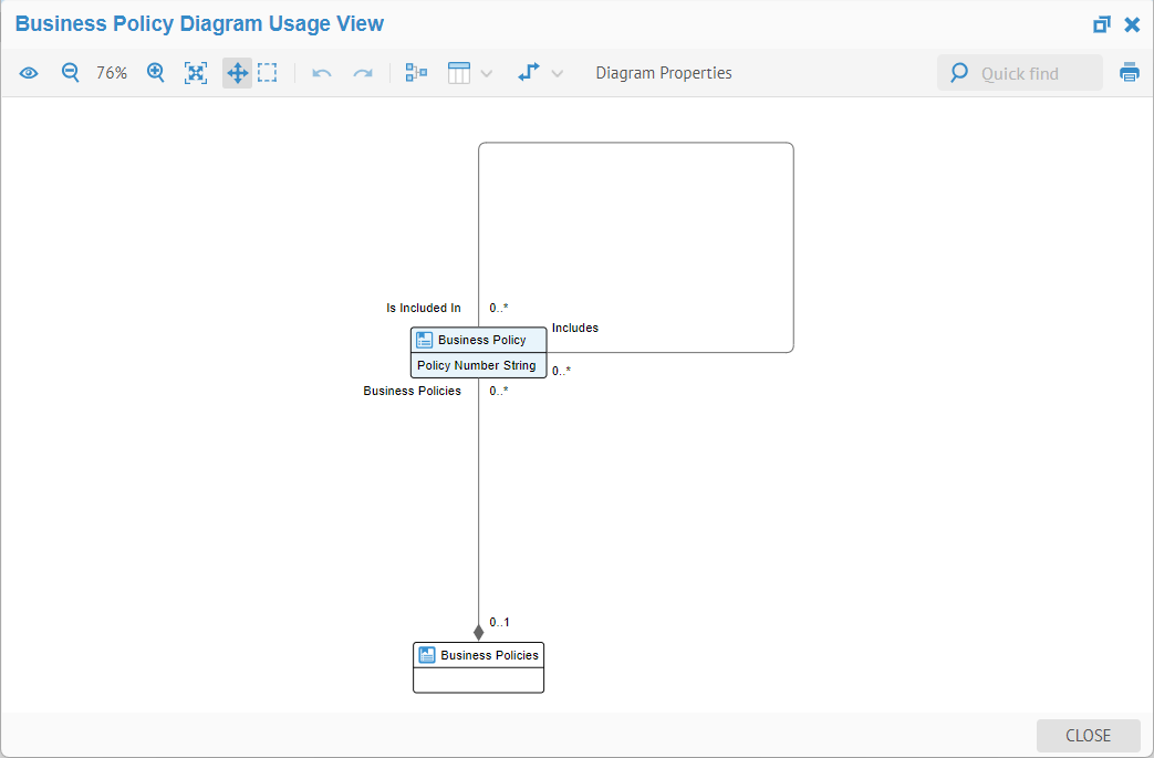 We may only select the composition relationship so that the model will be composed of the objects, in this case Business Policies. As with other composition relationships, the UI will understand that this it should be presented as a hierarchy.