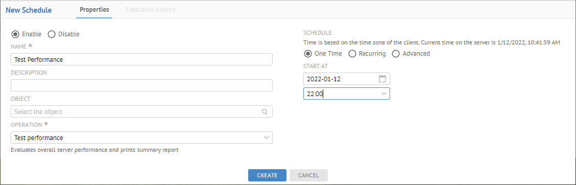 When disabled, a schedule will not run even though it has a recurring time.