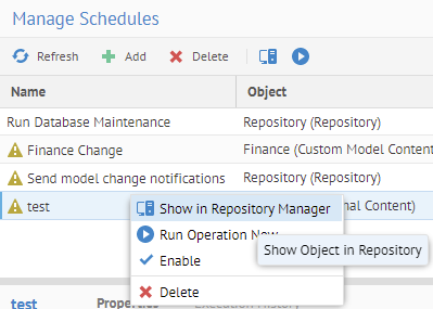 Right-click the any schedule and select Show in Repository Manager.