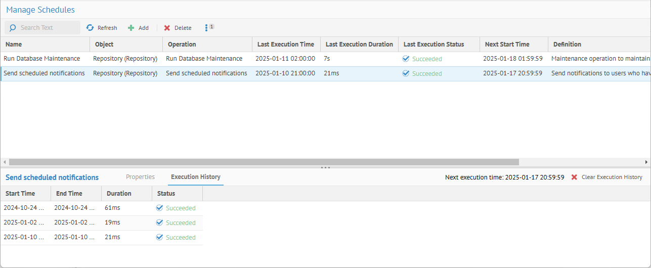 • Last Execution Time -- Date and time when the scheduled task was last executed.