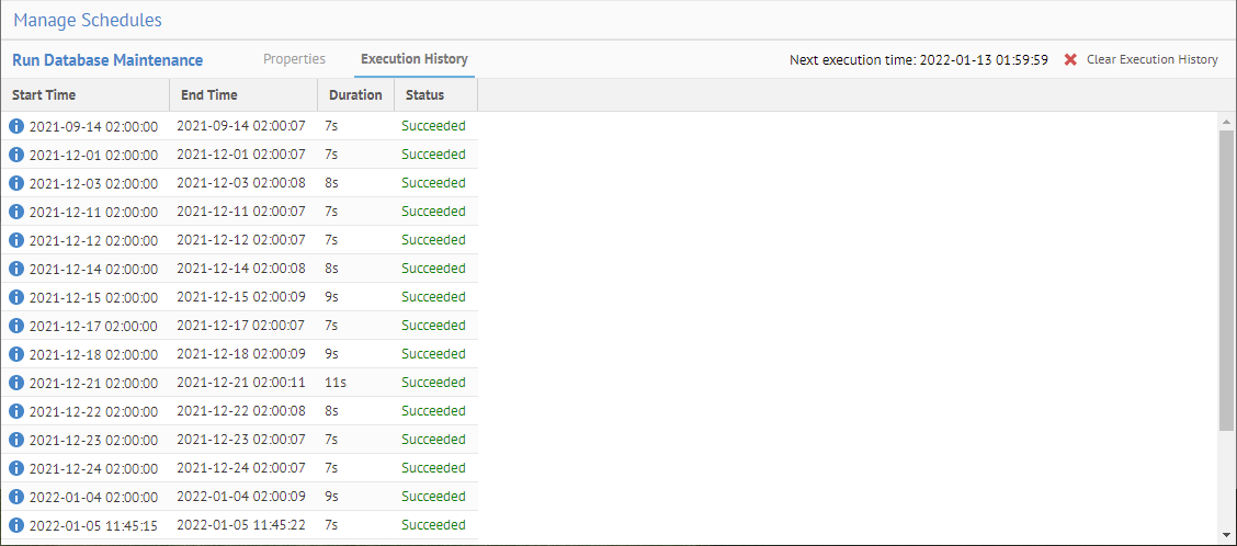 A manual execution of the schedule will also be recorded here.