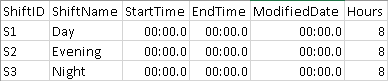 Change the data values for the first column (ShiftID) to "S1", "S2" and "S3"