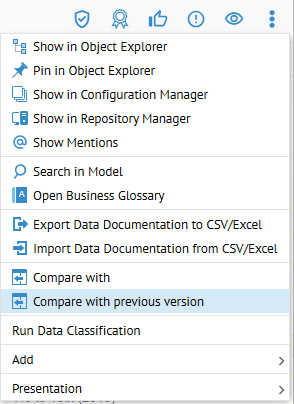 and right click any model, configuration or glossary in the Repository Panel, and select Compare with....