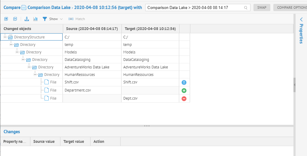 In this example, we will compare two multi-model data source models. In this case, the model will have a directory structure and the comparison will be performed at two levels (the directory structure and at individual leaves that are internal models).