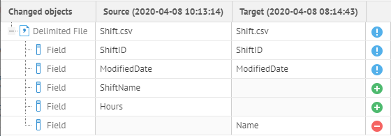 Now, we see the added and removed icons in a more appropriate order, where we added the Hours column as well as renaming Name to ShiftName.