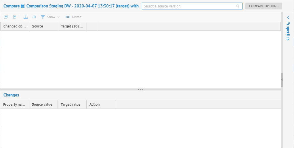 Switch to Merge if comparing two versions of a Physical Data Model.