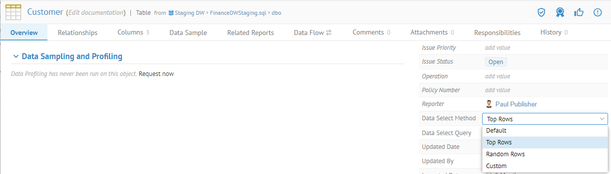 1. Go to the object page of the object of which you wish to generate or refresh the data sampling and profiling.