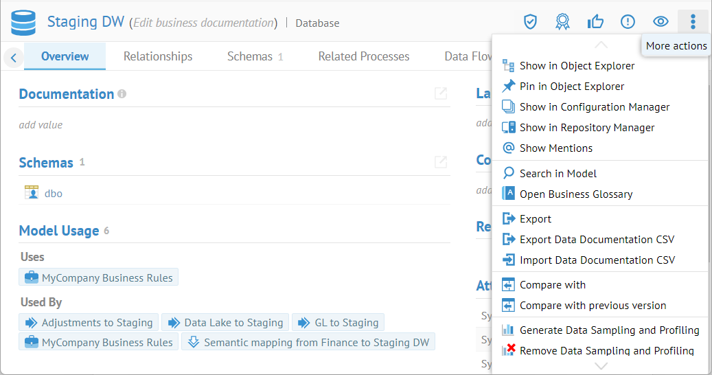 When you assign a sensitivity label to an imported object, there are inferred sensitivity labels so that when you apply a sensitivity label to an imported object, e.g. a column, then all the imported objects "downstream" in the data flow lineage will be given at least that level of sensitivity as "Sensitivity Label Lineage Proposed". This means you will see automatic sensitive label tagging by inference across the enterprise architecture. As with "Sensitivity Label Data Proposed", the "Sensitivity Label Lineage Proposed" can be rejected, therefore stopping the propagation of inferred sensitivity labels in that data flow direction. Note that the propagation of inferred sensitivity level is also not inferred by any data masking discovered within the ETL/DI/Scrip imports involved in that data flow.